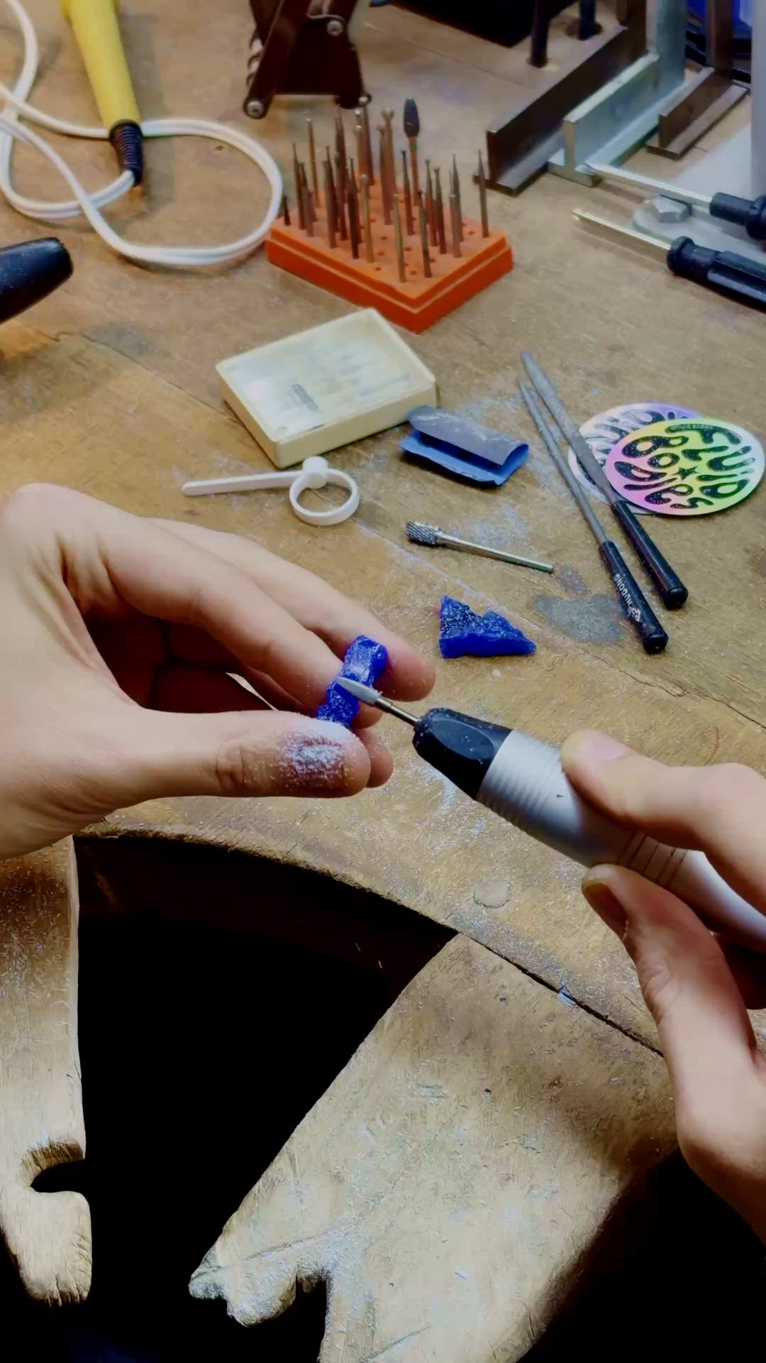 Du lernst, wie man mit speziellem Modellierwachs arbeitet – feilen, schmelzen, sägen, glätten, formen.